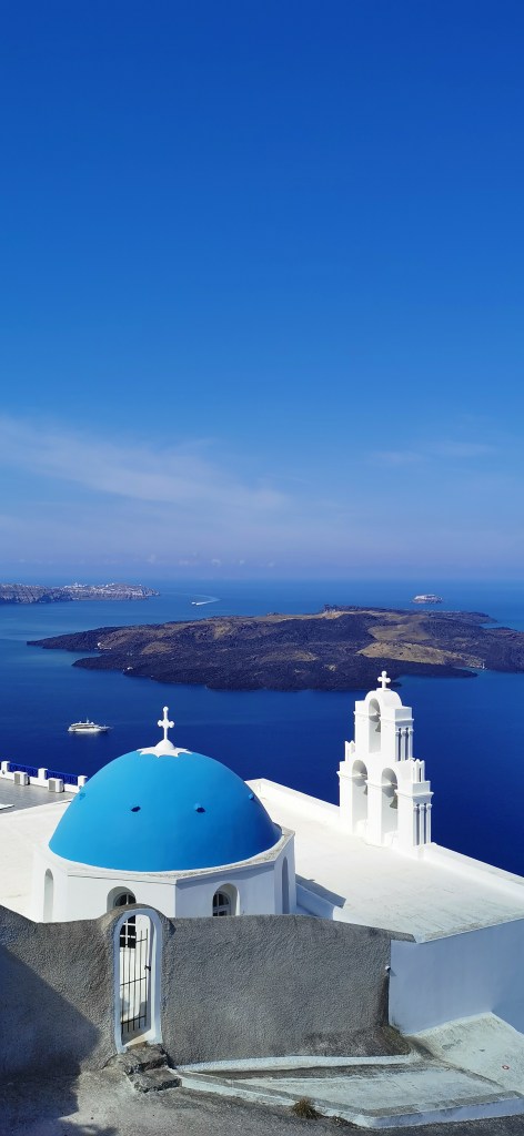 Esta es una de las más famosas (y masificadas) del archipiélago griego y aún así quisimos que fuese la primera que visitamos. Confiábamos en que en esta «era Covid» no habría mucha gente, y acertamos.
