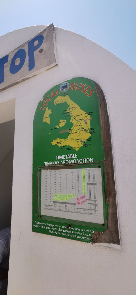 Existe servicio de autobús a lo largo de la isla, nosotros solamente lo usamos para volver de Oia a Fira tras la ruta que hicimos.