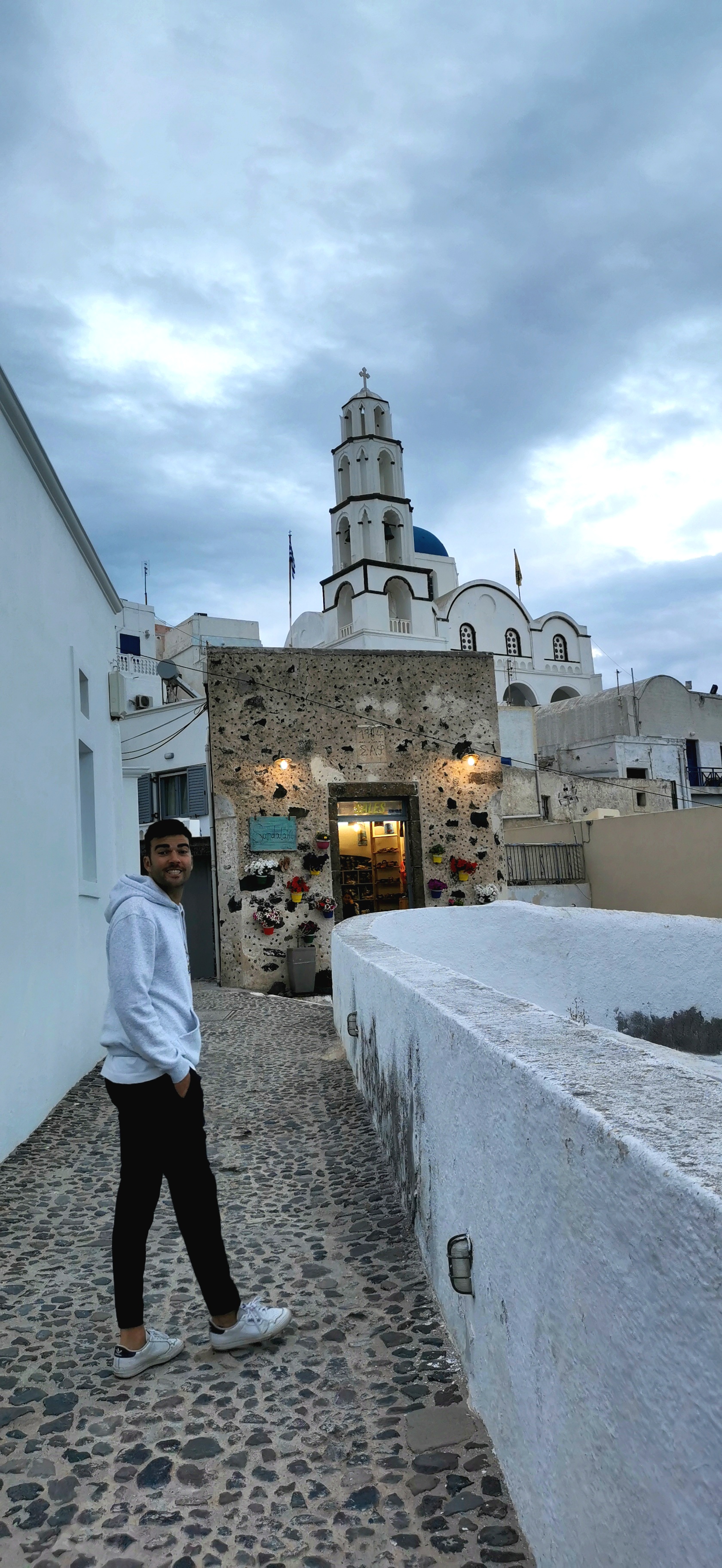 También es una pequeña población en la costa, 300 metros sobre el nivel del mar, cerca de Firostefani y por la que pasamos haciendo la ruta hacia Oia. Al ser un lugar menos turístico, alojarse en esta zona es más barato.