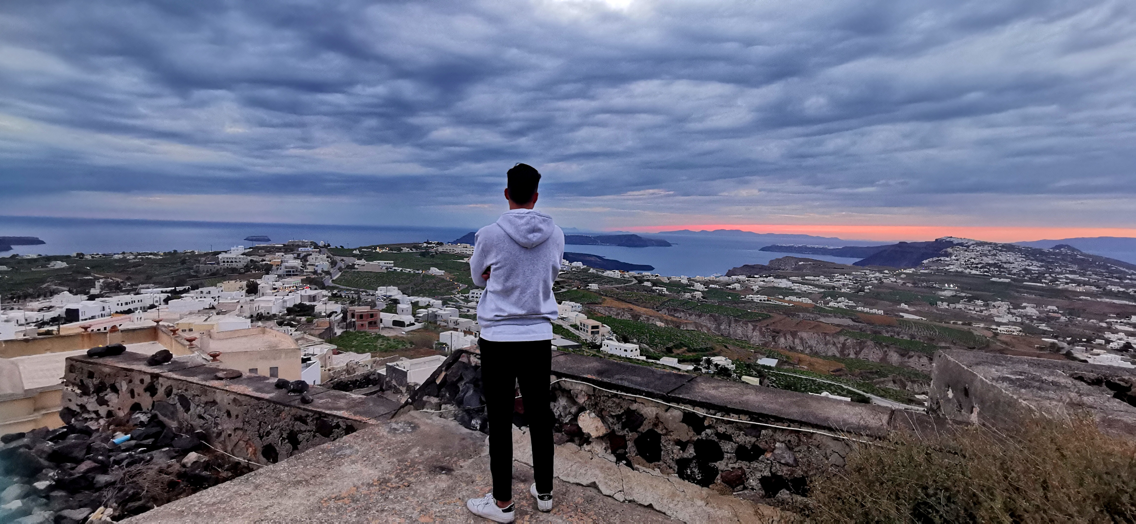 Y sí, nos perdimos el atardecer desde Oia, pero lo disfrutamos desde otras partes (sin mil cabezas y palos selfie de por medio ).