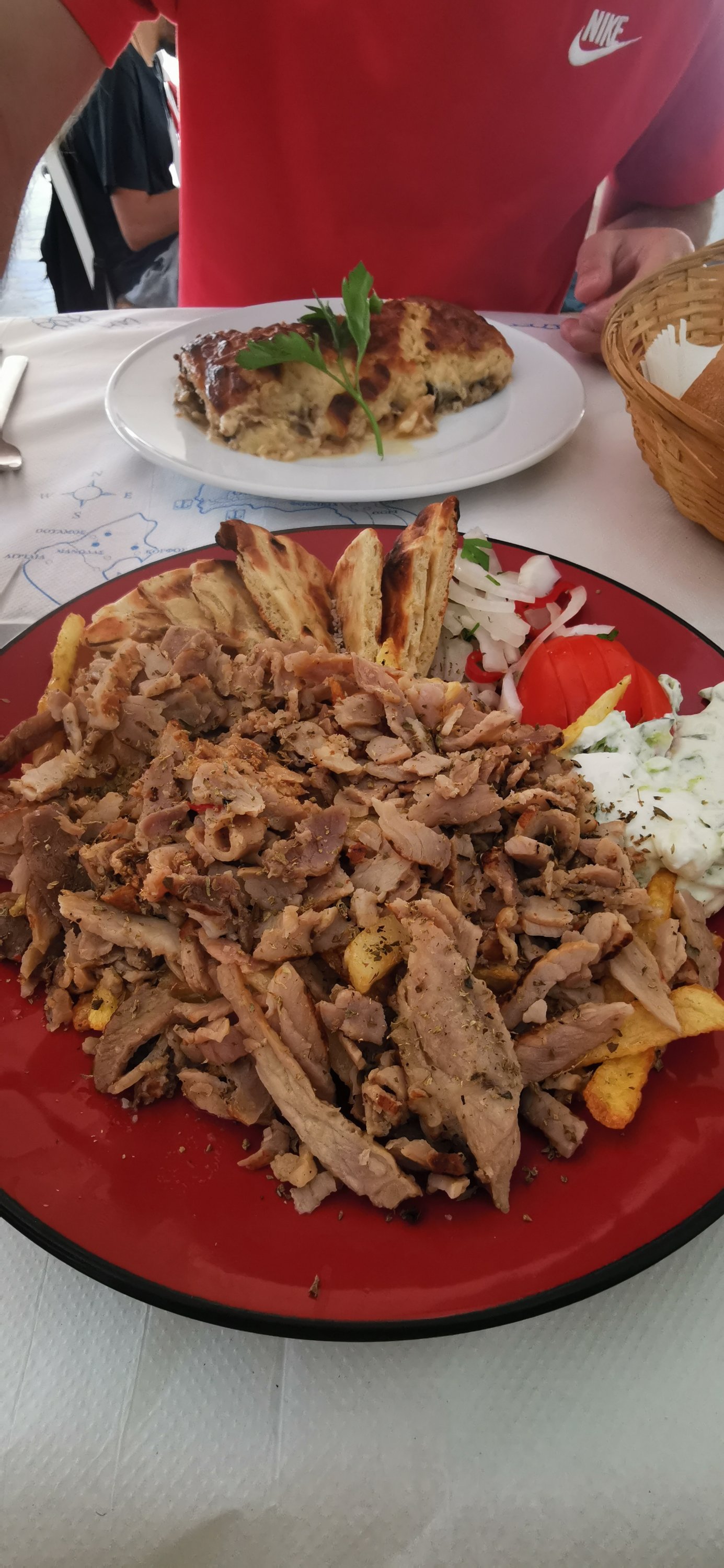 Una buena experiencia aunque en parte pagas sobretodo la localización porque otros restaurantes a los que fuimos en Grecia no le tenían nada que envidiar a sus platos.